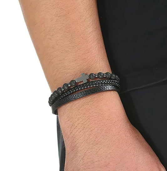 Cross Leather Like Bracelet