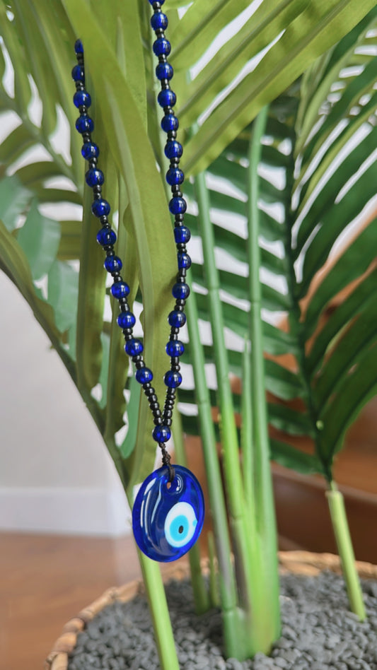 Blue & Black Beaded Evil Eye Car Charm