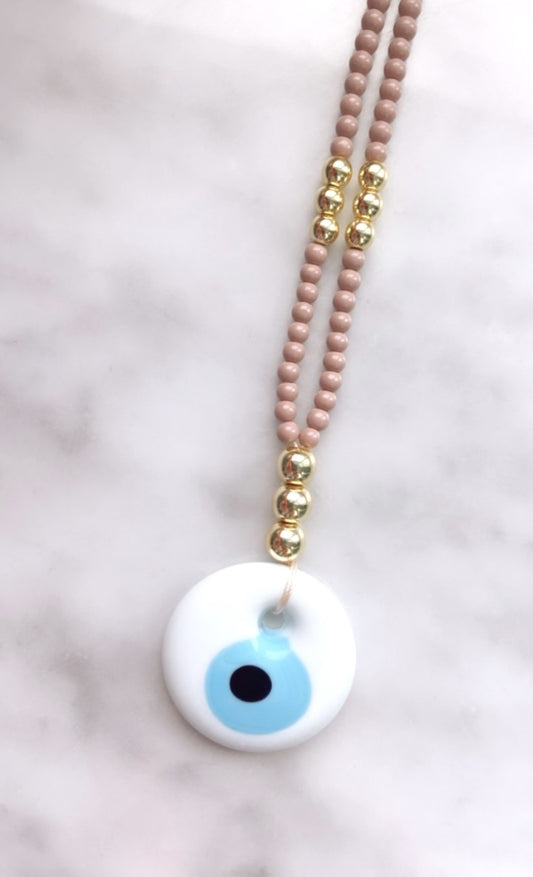 Gold Beaded Evil Eye Car Charm