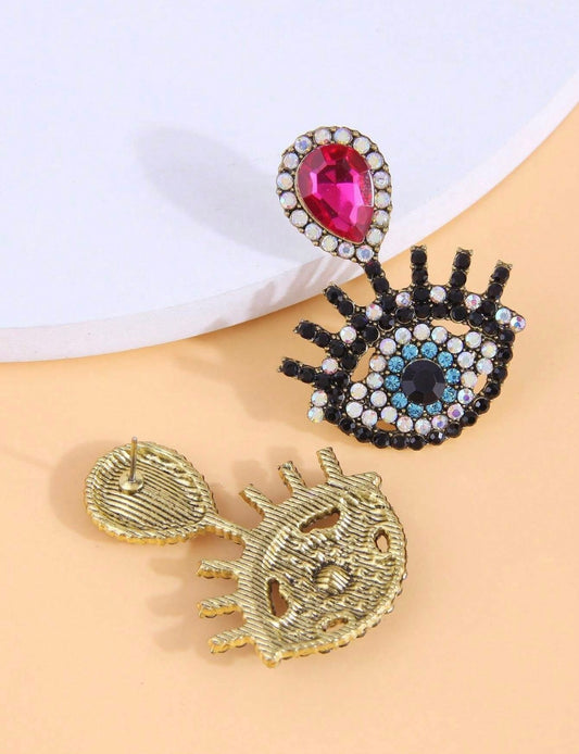 Rhinestone Evil Eye Stud Earrings (Silver)