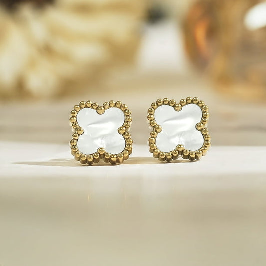 Clover 925 Sterling Silver Stud Earrings (Gold)