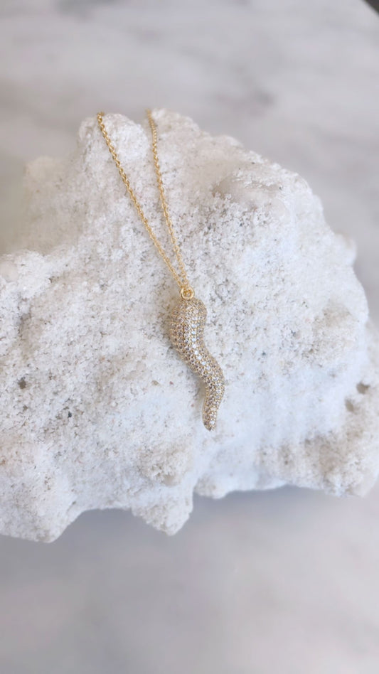 Glam Paved Horn Cornicello Necklace