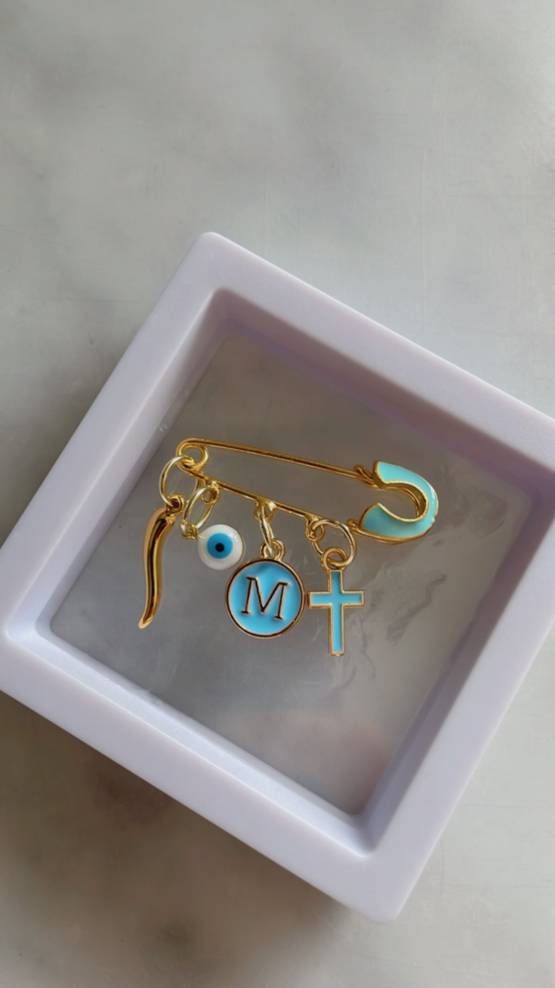 Habituellement épinglé sur les vêtements des bébés et des tout-petits – peut être offert aux nouveau-nés, aux cadeaux de fête prénatale, aux cadeaux de baptême, aux nouvelles et futures mamans. Également un beau cadeau pour une mariée – à épingler sur une robe de mariée ou un bouquet de mariée.