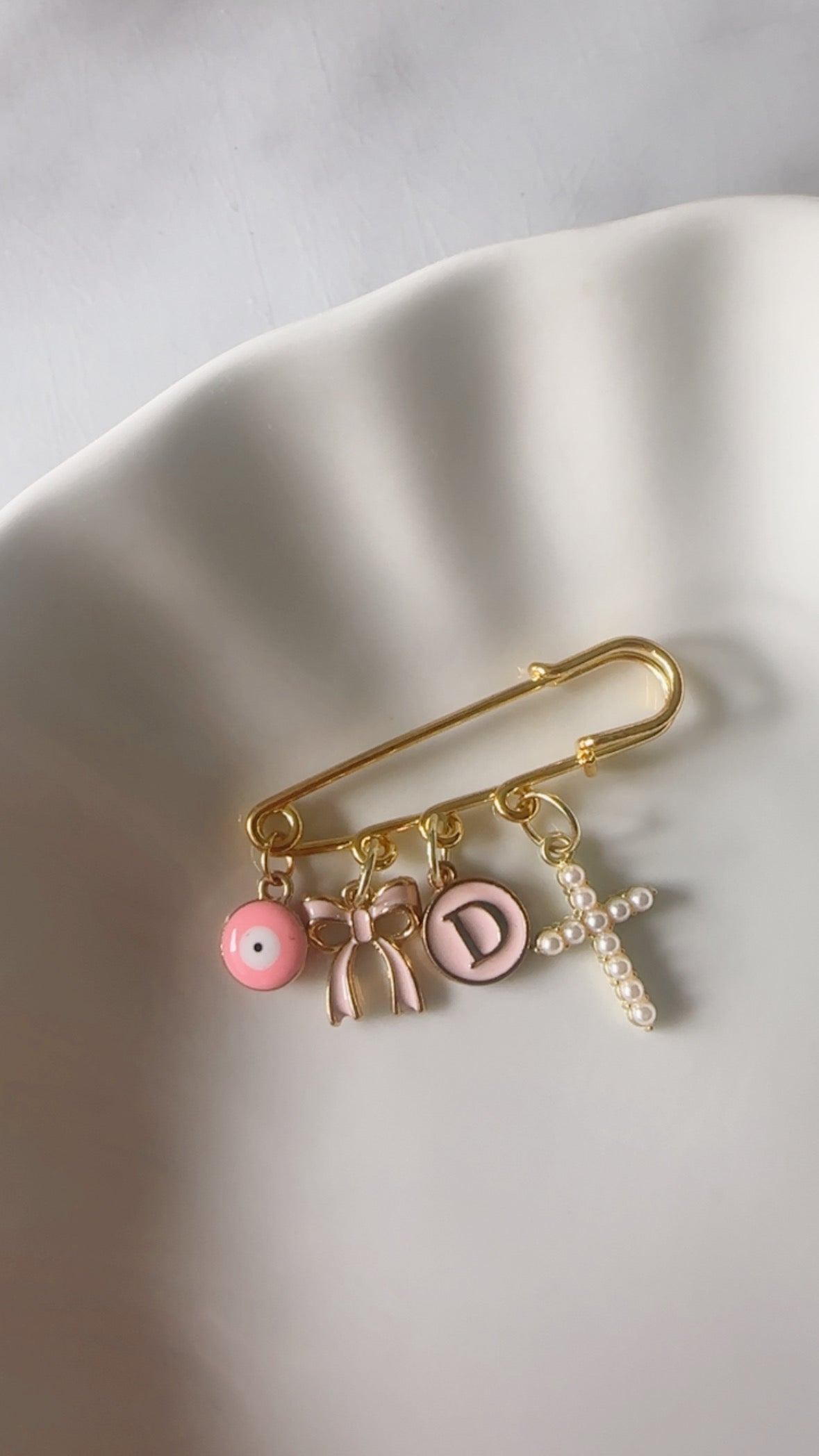 Habituellement épinglé sur les vêtements des bébés et des tout-petits – peut être offert aux nouveau-nés, aux cadeaux de fête prénatale, aux cadeaux de baptême, aux nouvelles et futures mamans. Également un beau cadeau pour une mariée – à épingler sur une robe de mariée ou un bouquet de mariée.