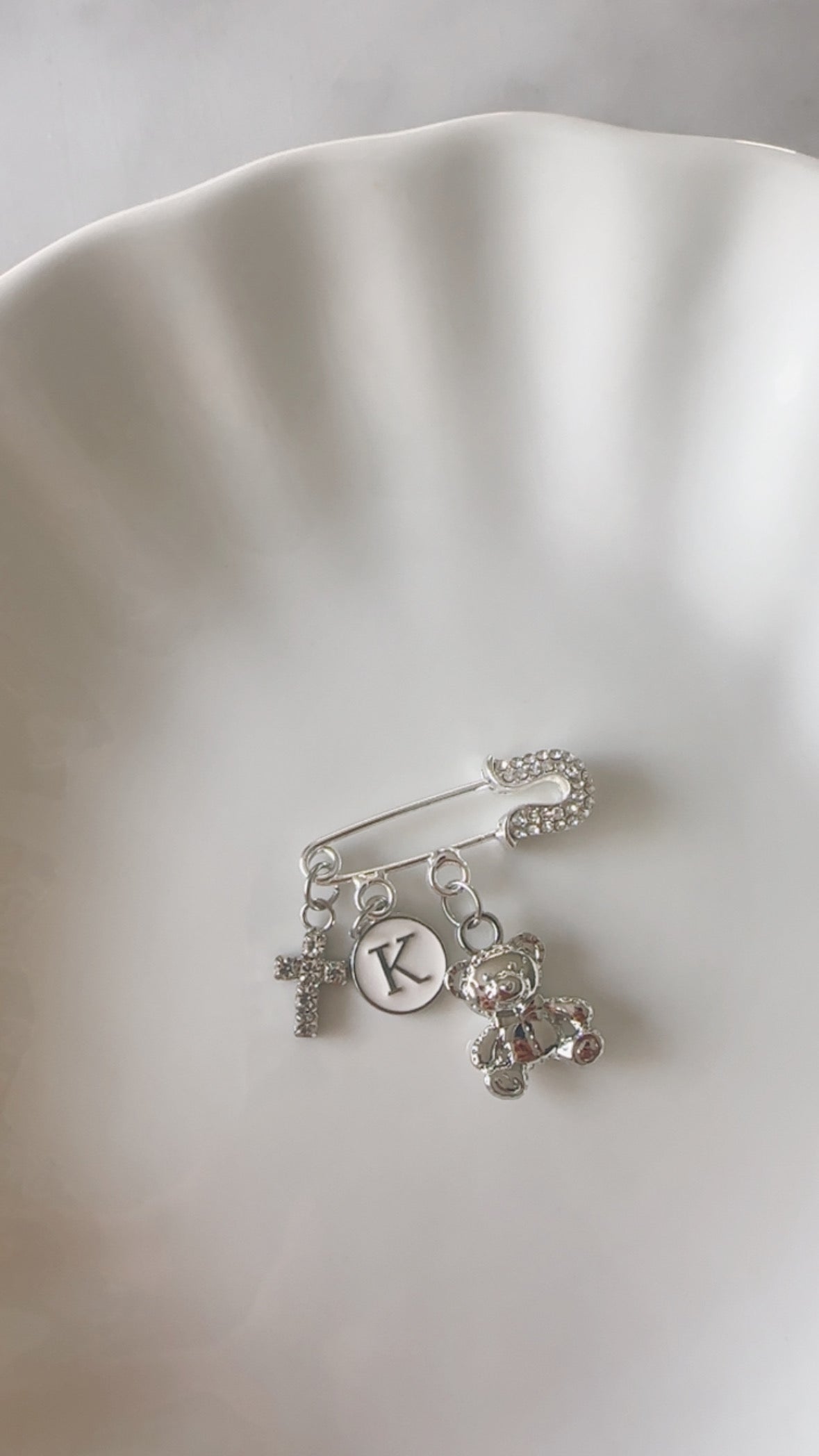 Habituellement épinglé sur les vêtements des bébés et des tout-petits – peut être offert aux nouveau-nés, aux cadeaux de fête prénatale, aux cadeaux de baptême, aux nouvelles et futures mamans. Également un beau cadeau pour une mariée – à épingler sur une robe de mariée ou un bouquet de mariée.