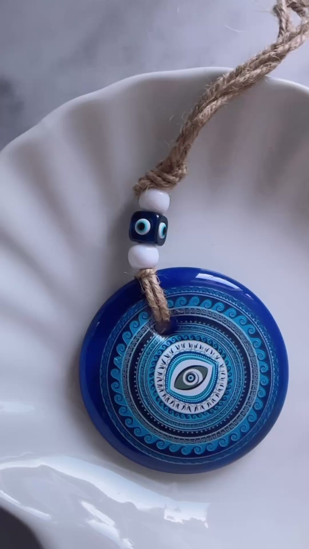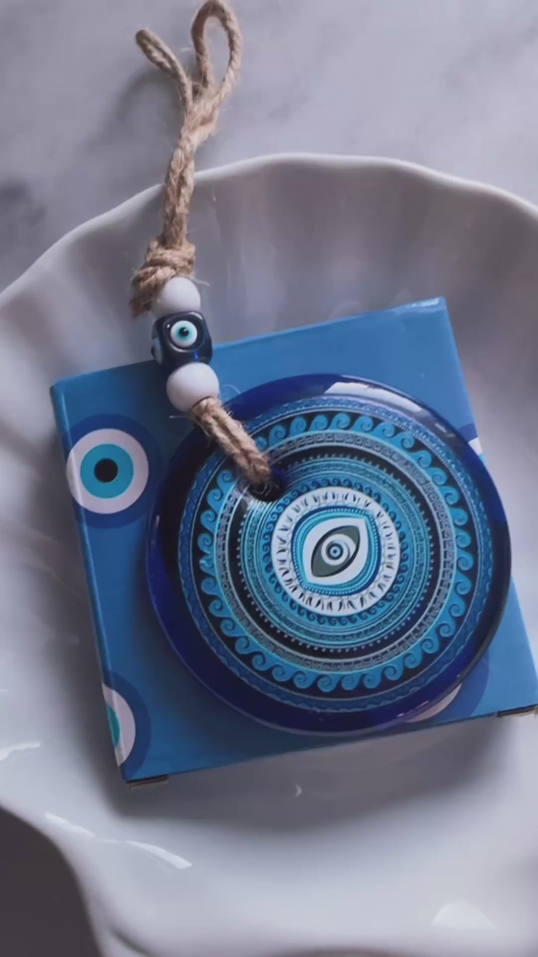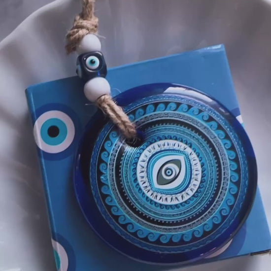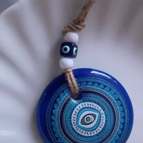 A gorgeous blue glass mati wall hanging piece, to bring good luck and positive vibes to your space!