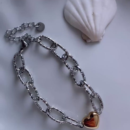 The Heartbeat chain bracelet is perfect statement piece. Wear it alone or stack it with your favorite gold and silver bracelets for a mixed metal look!