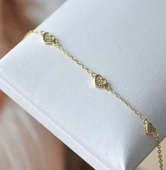 NEW - Heart 925 Sterling Silver Bracelet (Gold)